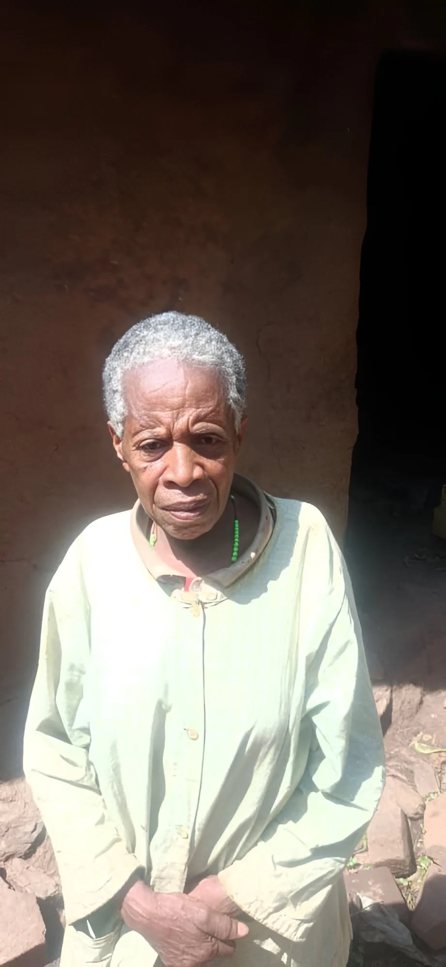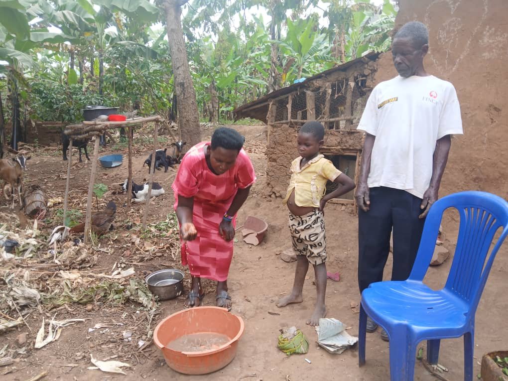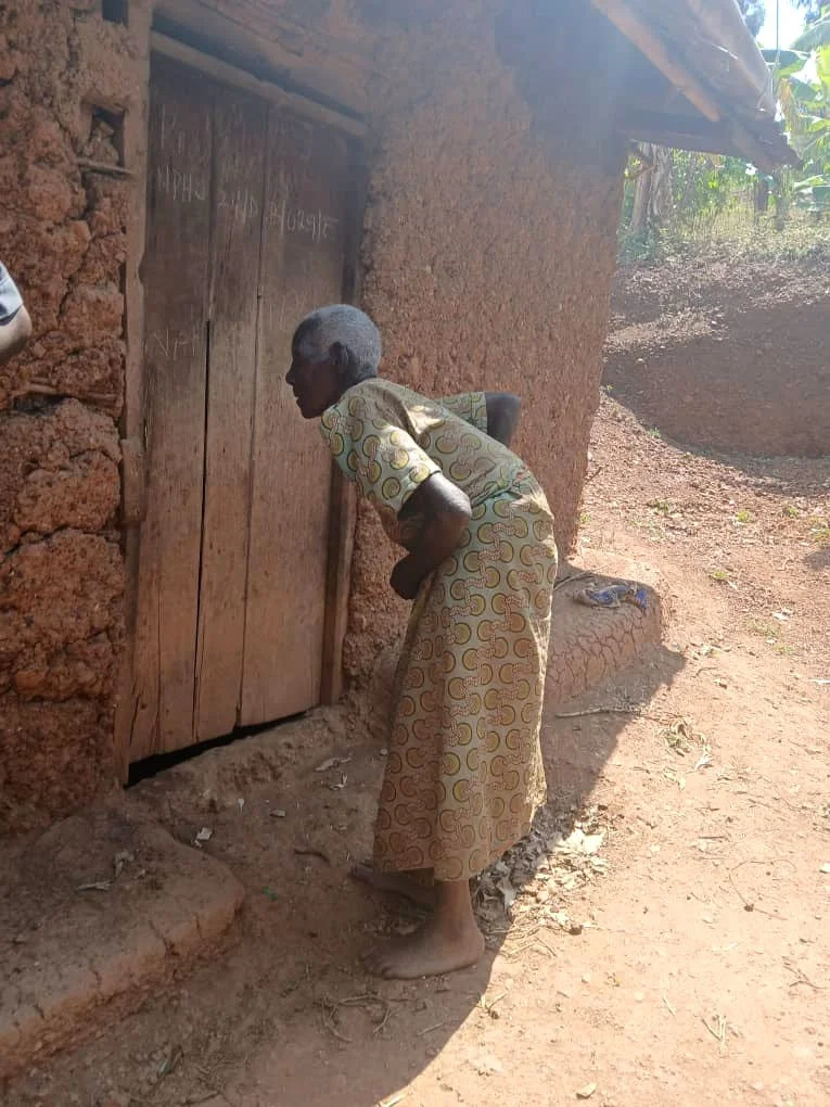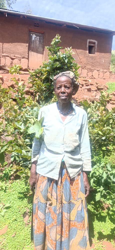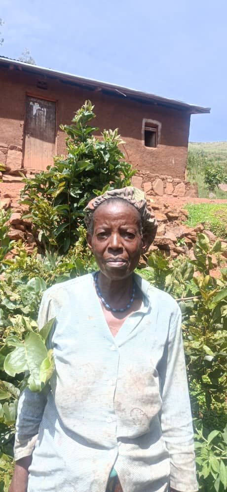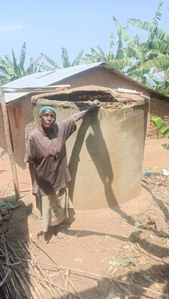 At 80, Kyoheirwe cared for grandchildren and animals while walking long distances for water. A tank at home now protects her health and that of her family.