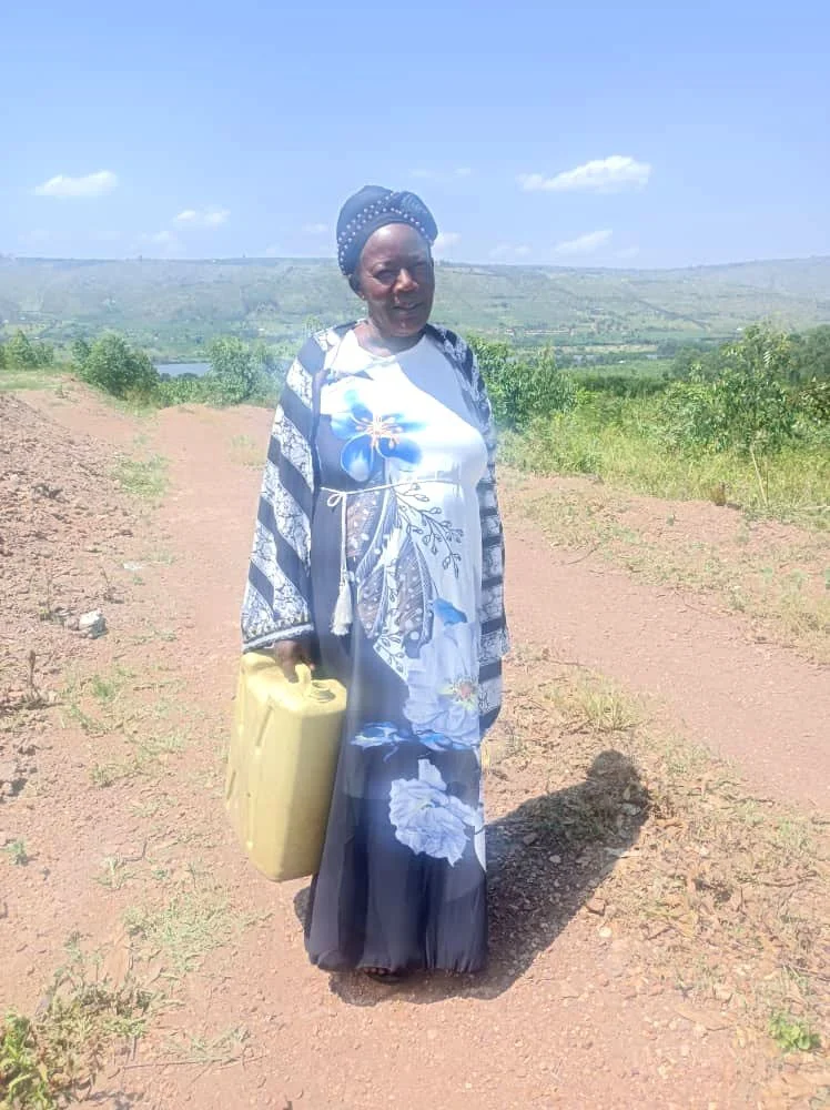 In the Kamubeizi hills, Dovina and her daughter once carried jerry cans 5 km down steep tracks. Dangerous trips left them weary and unwell. Today, water flows safely at home, bringing health and peace of mind.