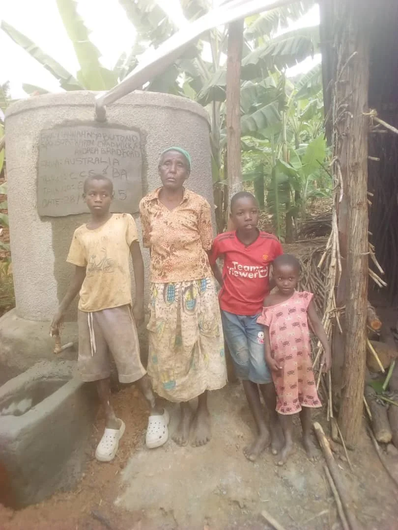 Widowed and raising seven children and a newborn, Tugumisirize once walked 5 km daily for water. Clean water at home has eased her struggle and brought new stability.