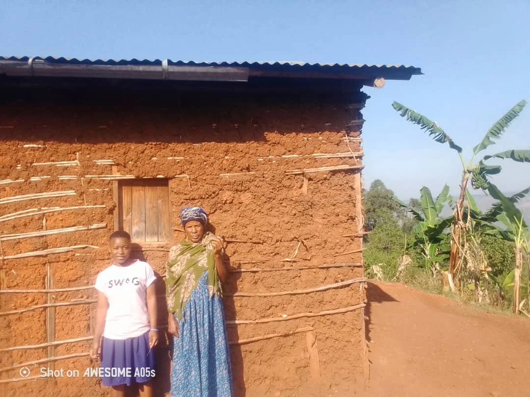 Geitaka cares for six grandchildren. For years, they walked 7 km daily for unsafe water, losing a child to cholera. A rainwater tank now brings safety, clean water, and the chance for education.